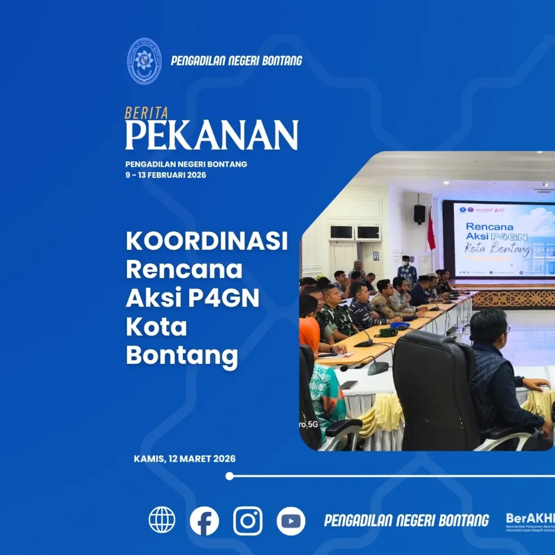 Pengadilan Negeri Bontang merangkum berbagai kegiatan pekan ini (9–13 Maret 2026), mulai dari koordinasi Rencana Aksi P4GN Kota Bontang, undangan penyambutan Kepala Kejaksaan Negeri dan buka puasa bersama, hingga pemeriksaan setempat objek sengketa perkara perdata.