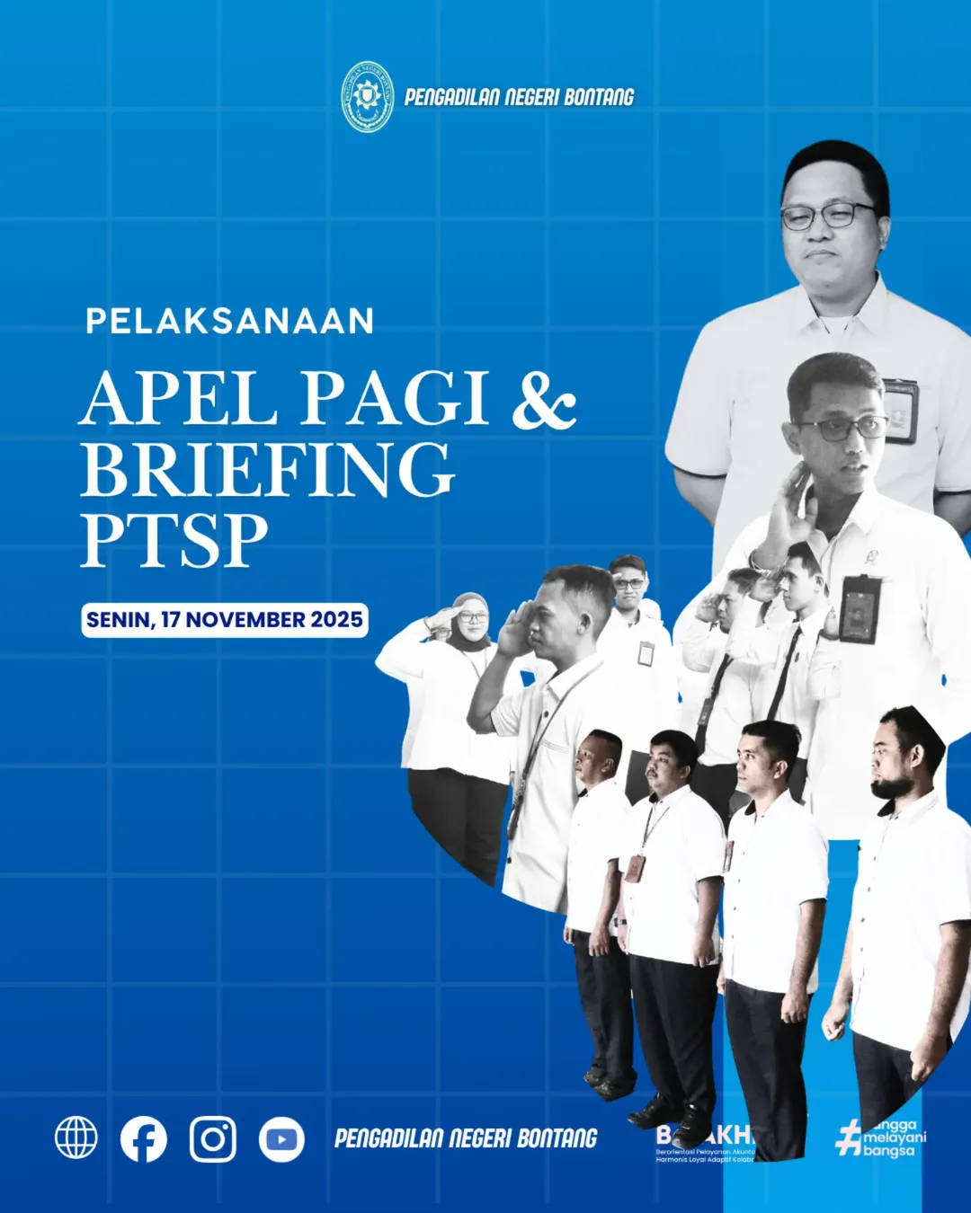 Melalui pelaksanaan rutin Apel Pagi dan Briefing ini, Pengadilan Negeri Bontang berkomitmen untuk terus meningkatkan kinerja, kedisiplinan, dan kualitas layanan kepada masyarakat, sesuai dengan prinsip peradilan yang sederhana, cepat, dan biaya ringan.