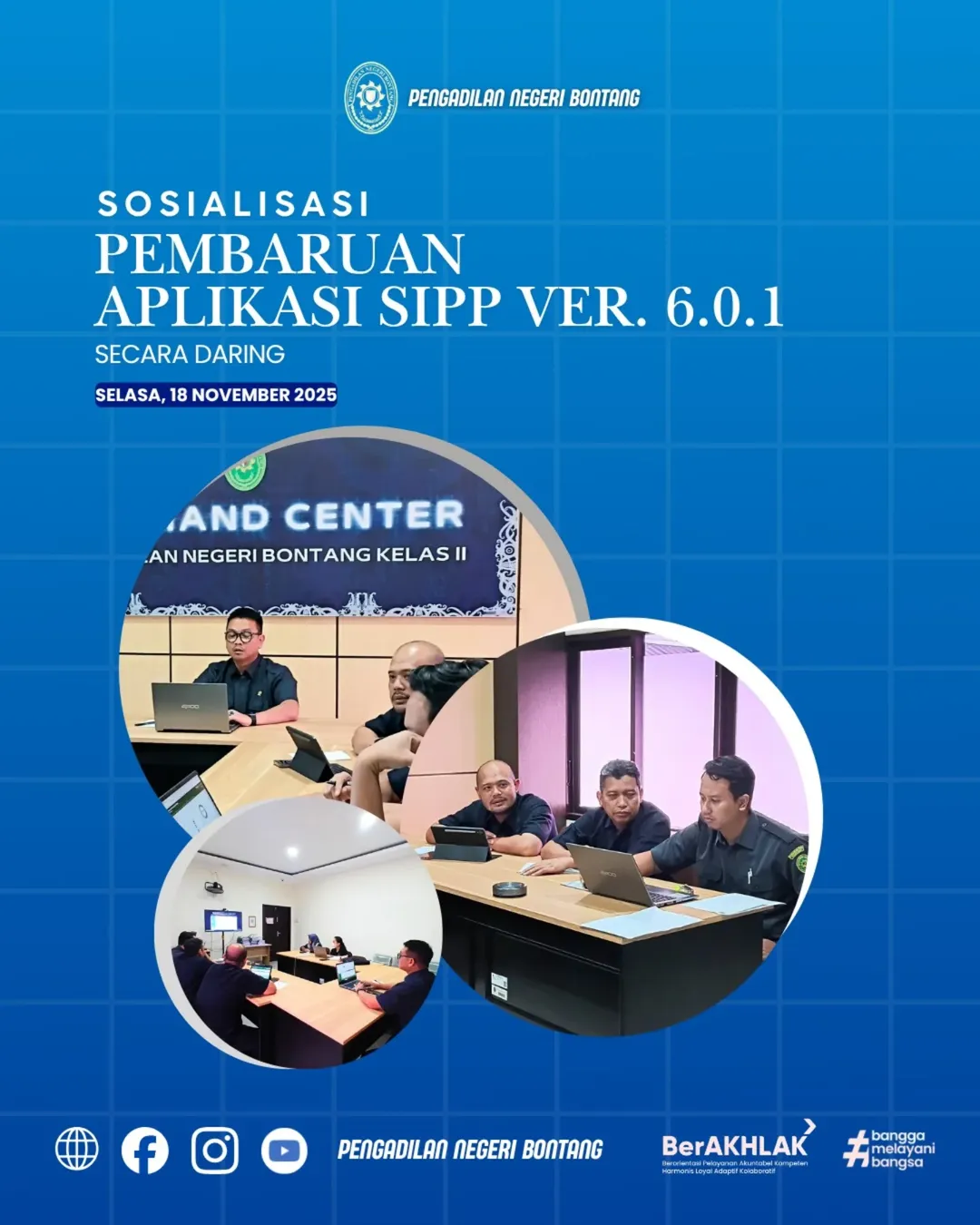 Bontang, 18 November 2025 — Pengadilan Negeri Bontang mengikuti kegiatan Sosialisasi Pembaruan Aplikasi Sistem Informasi Penelusuran Perkara (SIPP) Tingkat Pertama Versi 6.0.1, yang diselenggarakan oleh Direktorat Jenderal Badan Peradilan Umum Mahkamah Agung RI pada Selasa, 18 November 2025. Kegiatan ini digelar secara daring melalui Zoom Meeting sesuai dengan surat undangan resmi Nomor 316/DJU/UND.DL1.10/XI/2025 tanggal 17 November 2025.