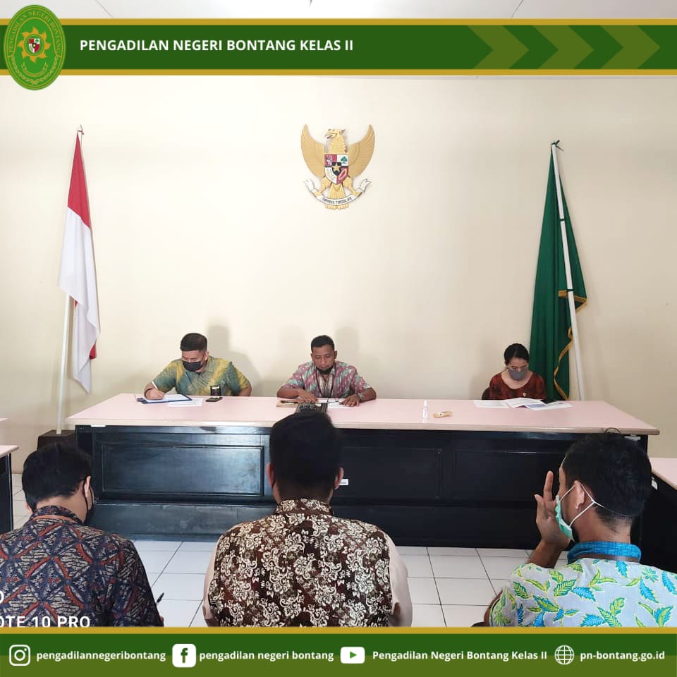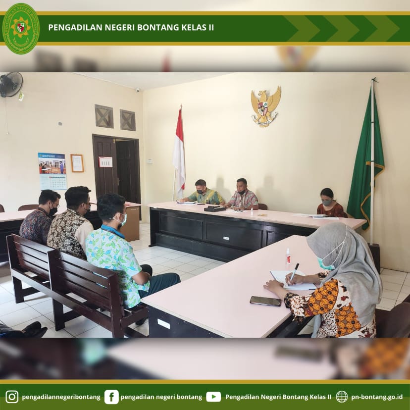 Pada hari Kamis, 3 Juni 2021 bertempat di Ruang Sidang Anak Pengadilan Negeri Bontang Kelas II, Jalan Awang Long Nomor 10, Bontang Baru, Kecamatan Bontang Utara, Kota Bontang, telah diadakan kegiatan evaluasi kinerja Pegawai Pemerintah Non Pegawai Negeri (PPNPN) yang dilakukan oleh Tim Evaluasi Kinerja PPNPN yang terdiri dari Sekretaris, Bapak Riza Putra Perdana, S.T., Hakim Wasbid Kepegawaian dan Ortala, Bapak Ngurah Manik Sidartha, S.H., Hakim Wasbid Umum Keuangan, Ibu Anna Maria Stephani Siagian, S.H., Kasubbag Kepegawaian dan Ortala, Ibu Titik Choiriya, S.H.