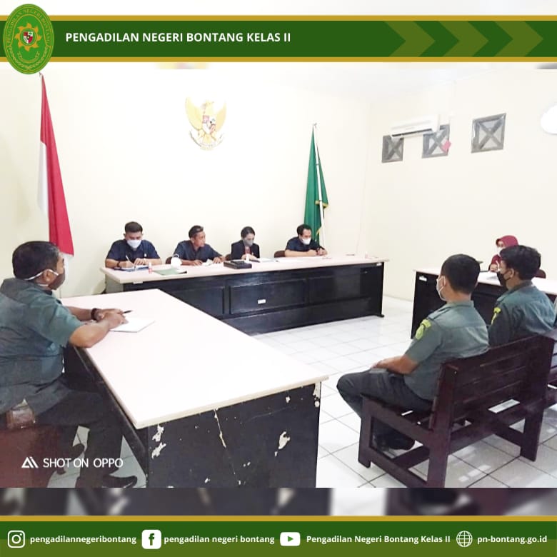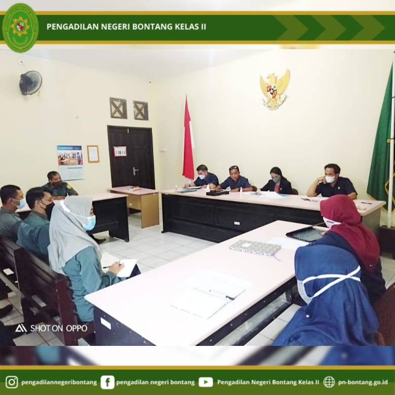 Pada hari Senin, tanggal 17 Mei 2021 bertempat di Ruang Sidang Anak Pengadilan Negeri Bontang Kelas II, Jalan Awang Long Nomor 10, Kota Bontang, telah dilaksanakan Kegiatan Rapat Bulanan Evaluasi Kinerja Bidang Kesekretariatan. Rapat dipimpin oleh Sekretaris Pengadilan Negeri Bontang Kelas II, Bapak Riza Putra Perdana, S.T., dengan diikuti oleh Para Hakim Pengawas Bidang Kesekretariatan, Para Kepala Sub Bagian, Para Staf, dan PPNPN Pengadilan Negeri Bontang Kelas II.