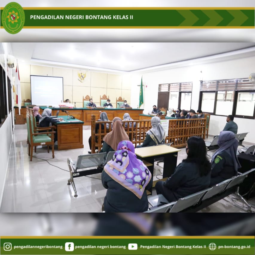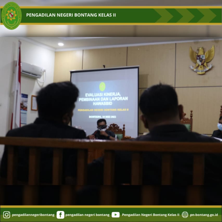 Pada hari Selasa, 18 Mei 2021, bertempat di Ruang Sidang Cakra, Pengadilan Negeri Bontang Kelas II, Jalan Awang Long Nomor 10, Kota Bontang, Pengadilan Negeri Bontang Kelas II melaksanakan Kegiatan Evaluasi Kinerja Pembinaan dan Laporan Hakim Pengawas Bidang Secara Bulanan.