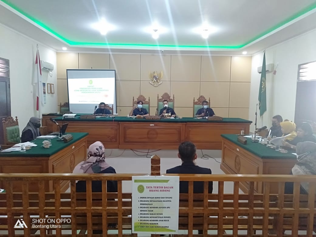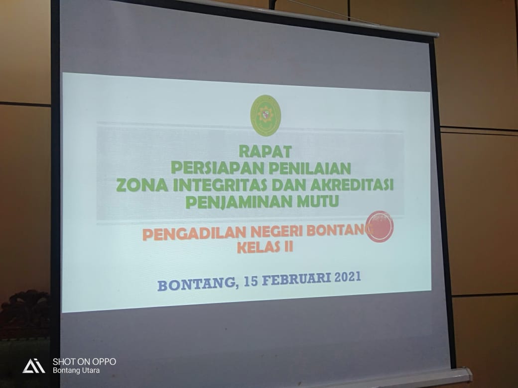 Ketua Pengadilan Negeri Bontang Kelas II Bapak Sofian Parerungan, SH., MH., memimpin Kegiatan Persiapan Penilaian Zona Integritas dan Akreditasi Penjaminan Mutu pada Pengadilan Negeri Bontang Kelas II pada hari Senin tanggal 15 Februari 2021 di ruang Sidang Cakra