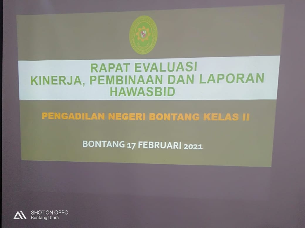 Ketua Pengadilan Negeri Bontang Kelas II Bapak Sofian Parerungan, SH., MH., memimpin Rapat Evaluasi Kinerja, Pembinaan dan Laporan HAWASBID Pengadilan Negeri Bontang Kelas II pada hari Rabu tanggal 17 Februari 2021 di ruang Sidang Cakra.,