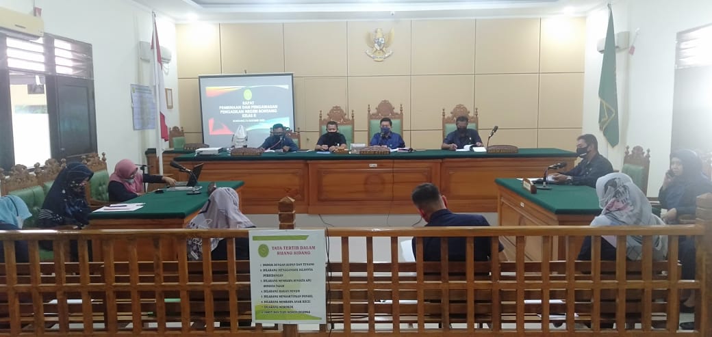 Ketua Pengadilan Negeri Bontang Kelas II Bapak Praditia Danindra, SH., MH., memimpin rapat pembinaan dan pengawasan kinerja Pengadilan Negeri Bontang Kelas II pada hari Selasa tanggal 13 Oktober 2020 di ruang Sidang Cakra