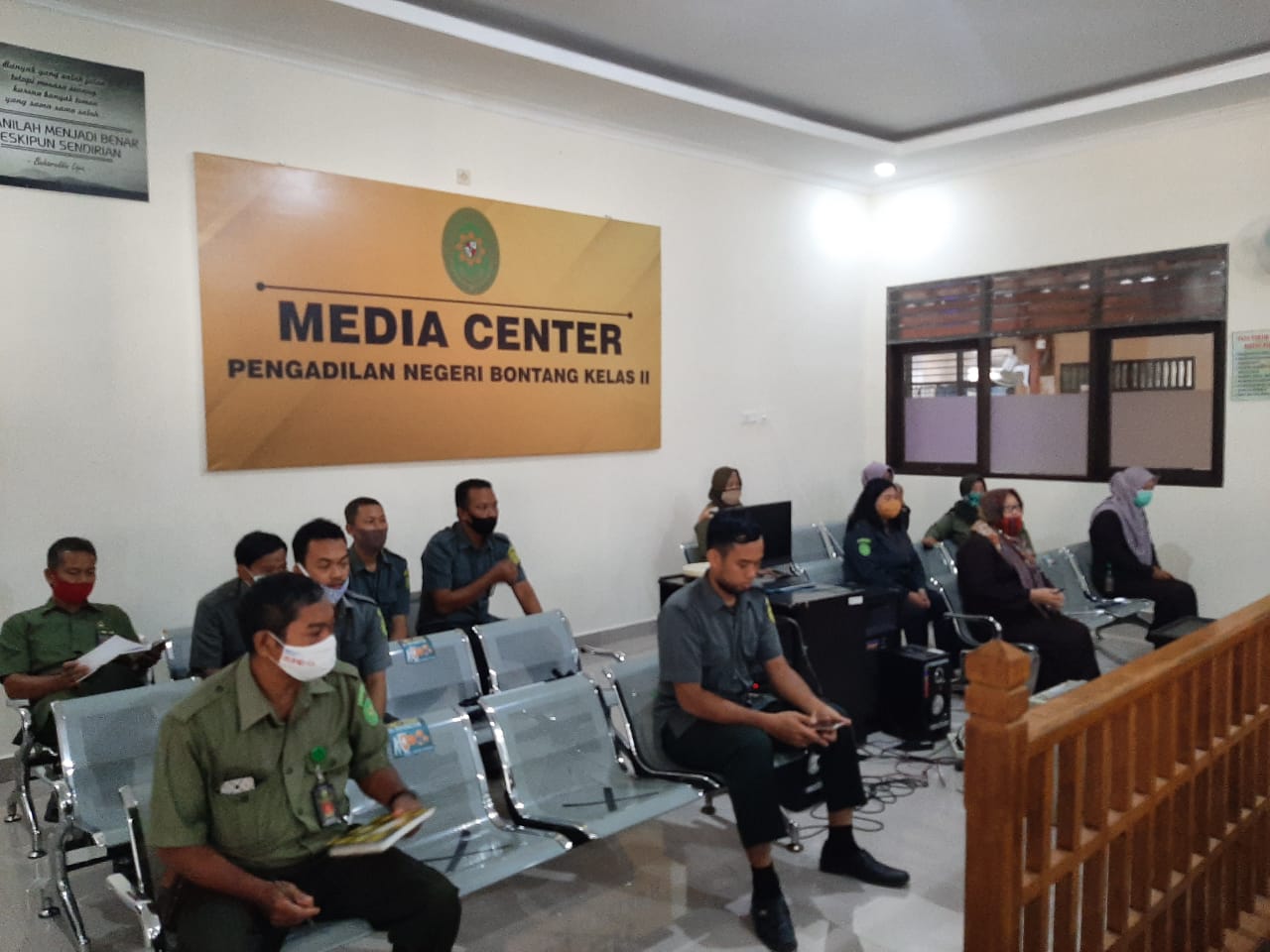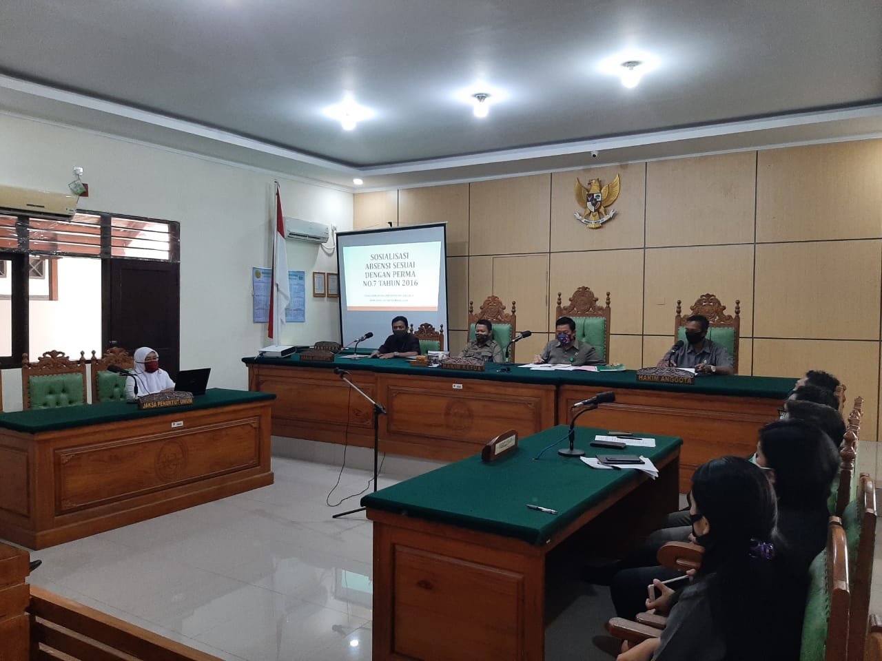 Ketua Pengadilan Negeri Bontang Kelas II Bapak Praditia Danindra, SH., MH., memimpin Sosialisasi Absensi sesuai Perma NO.7 Tahun 2016, pada hari Rabu tanggal 16 September 2020 di ruang Sidang Cakra