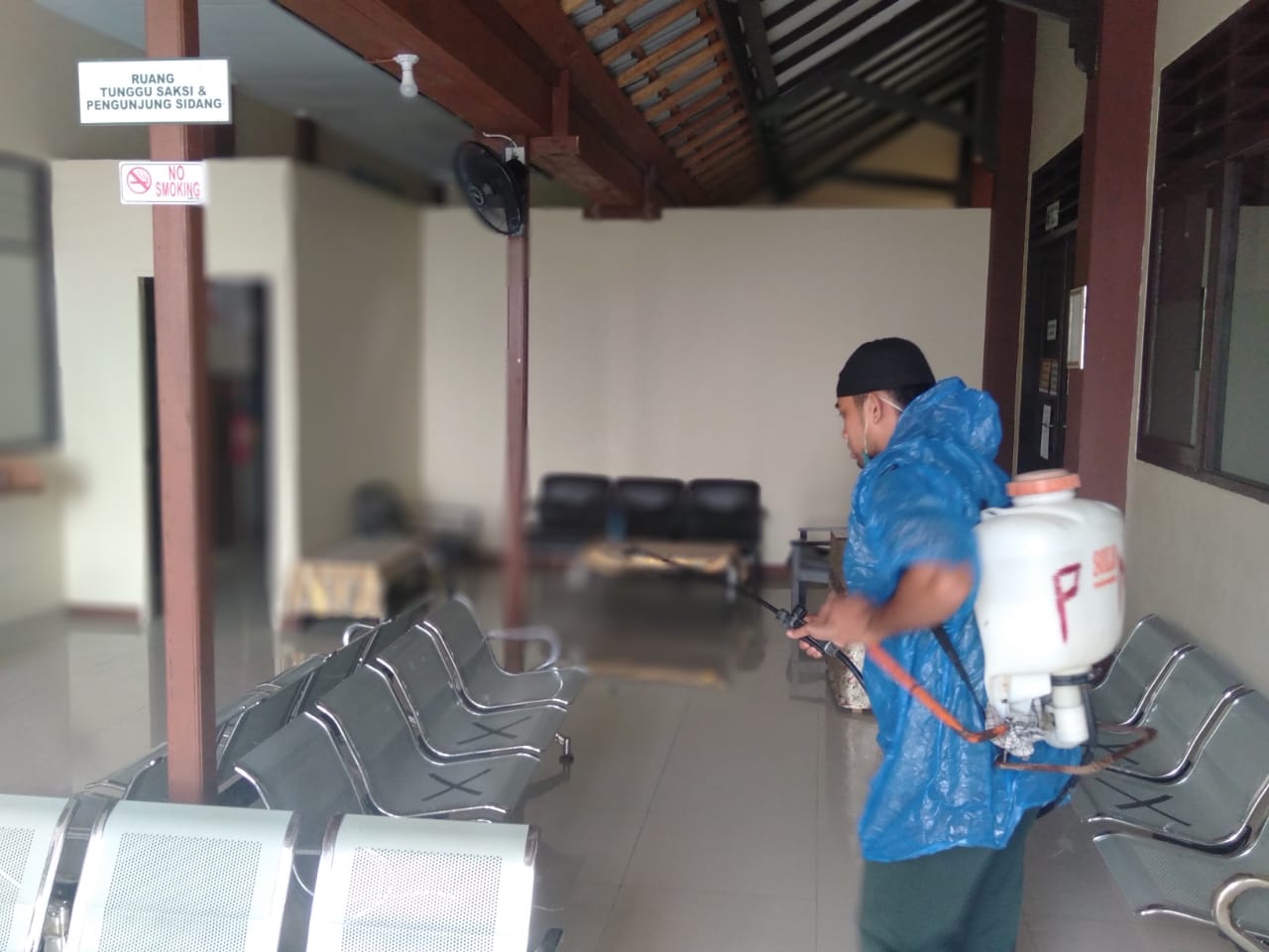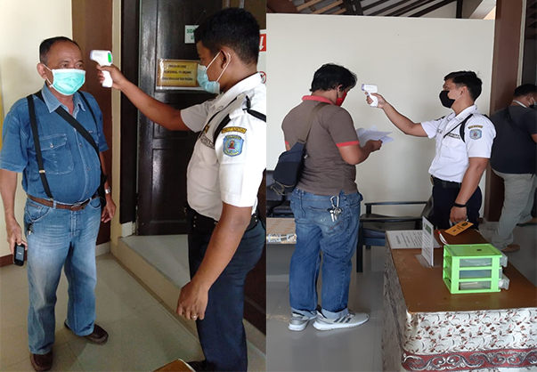Dalam Upaya Pencegahan Virus Covid 19 Pengadilan Negeri Bontang Kelas II melaksanakan Pemeriksaan suhu tubuh bagi para penerima layanan PTSP maupun pengunjung persidangan,