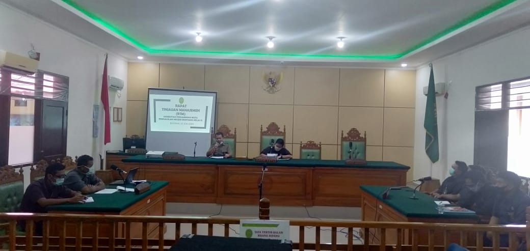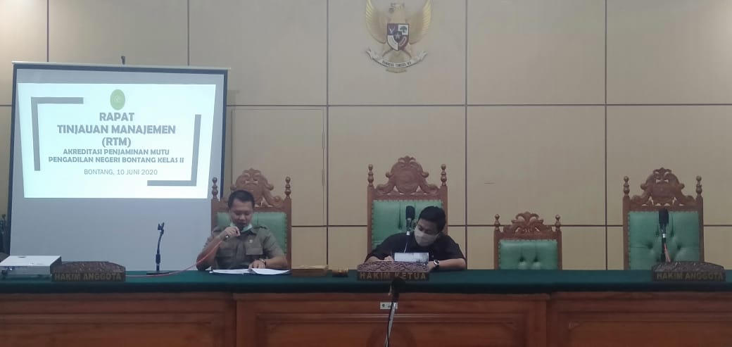 Ketua Pengadilan Negeri Bontang Kelas II Bapak Praditia Danindra, SH., MH., memimpin Rapat Tinjauan Manajemen selaku Top Leader didampingi Wakil Ketua sebagai Quality Manager Representative (QMR) pada tanggal 10 juni 2020 di ruang Cakra Pengadilan Negeri Bontang Kelas II.