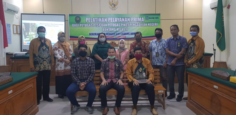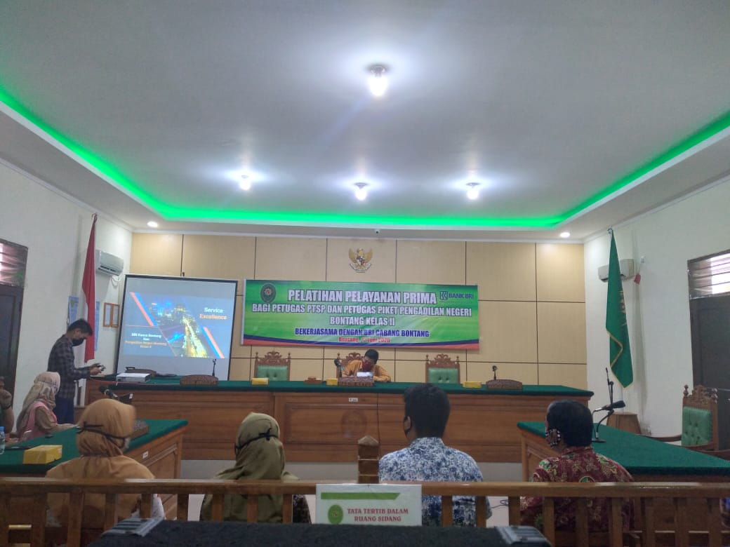 Pengadilan Negeri Bontang Kelas II bekerjasama dengan Bank Rakyat Indonesia kantor cabang Bontang melaksanakan kegiatan Pelatihan Pelayanan Prima bagi Petugas PTSP dan Petugas Piket Pengadilan Negeri Bontang Kelas II.