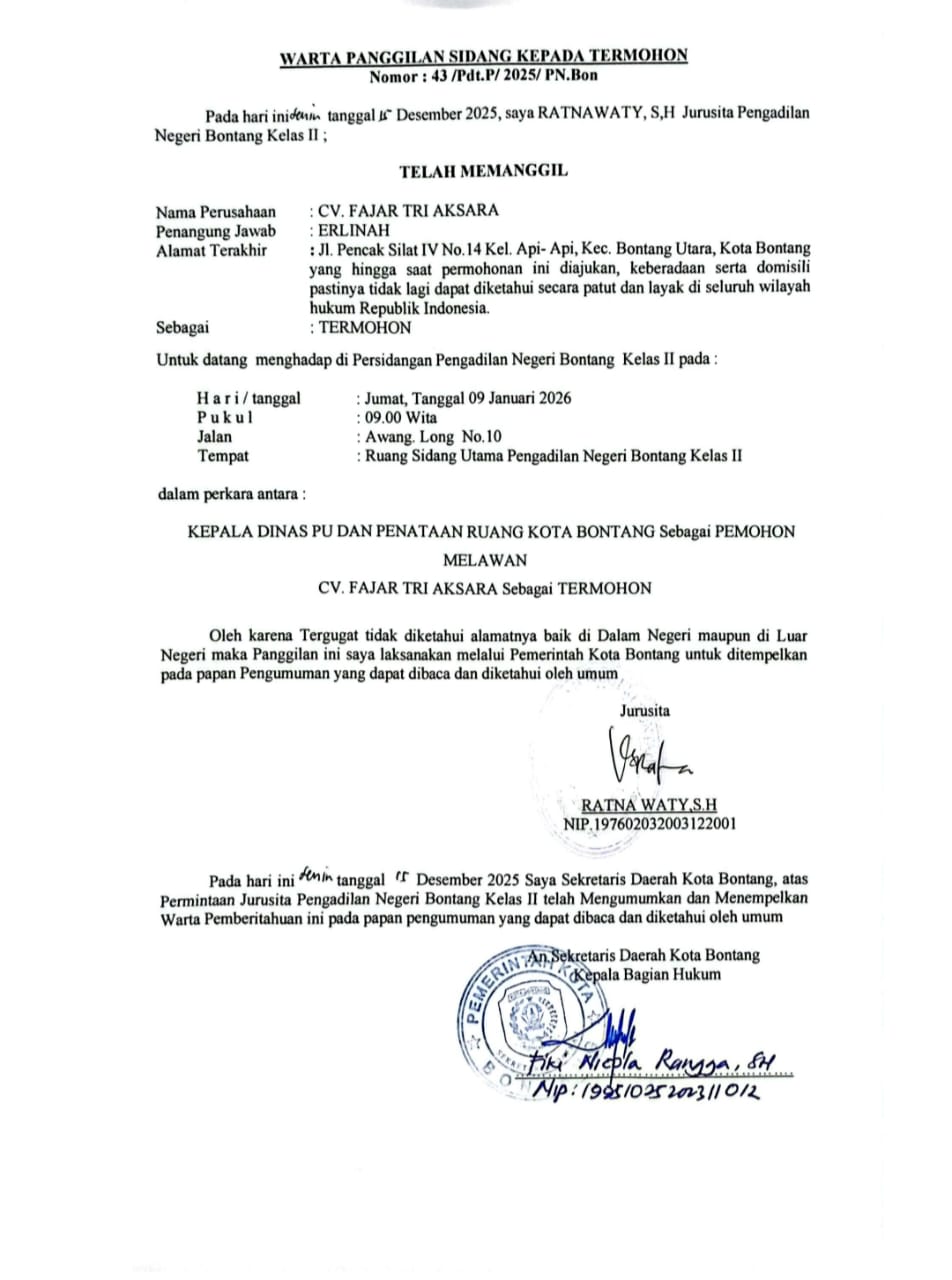BERITA PANGGILAN SIDANG KEPADA TERMOHON